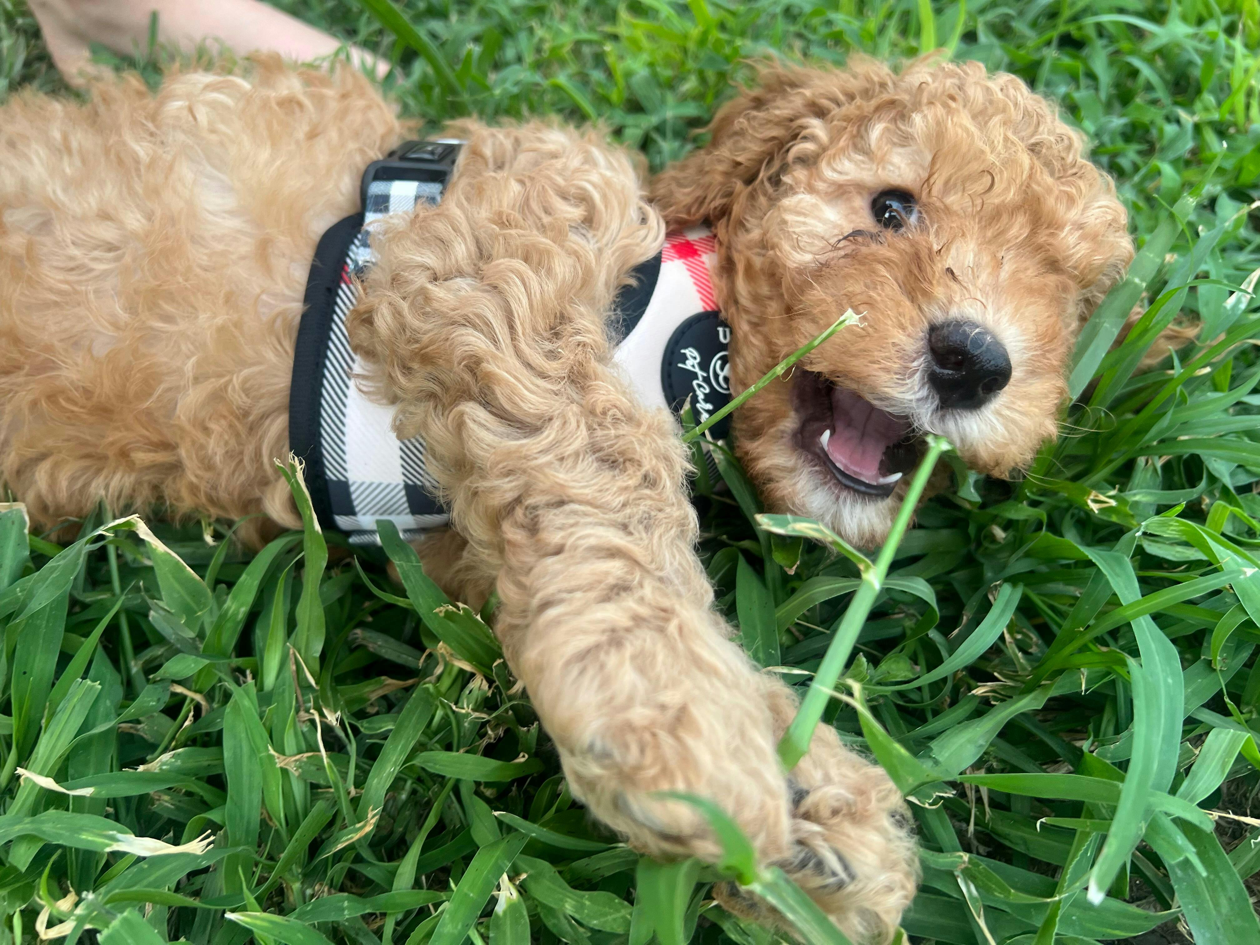 Cleo just had a litter of gorgeous pups and this was their take home gift. Looks absolutely adorable on them. It’s awesome they have tiny sizes Pawfect for puppies to get used to harness early on.